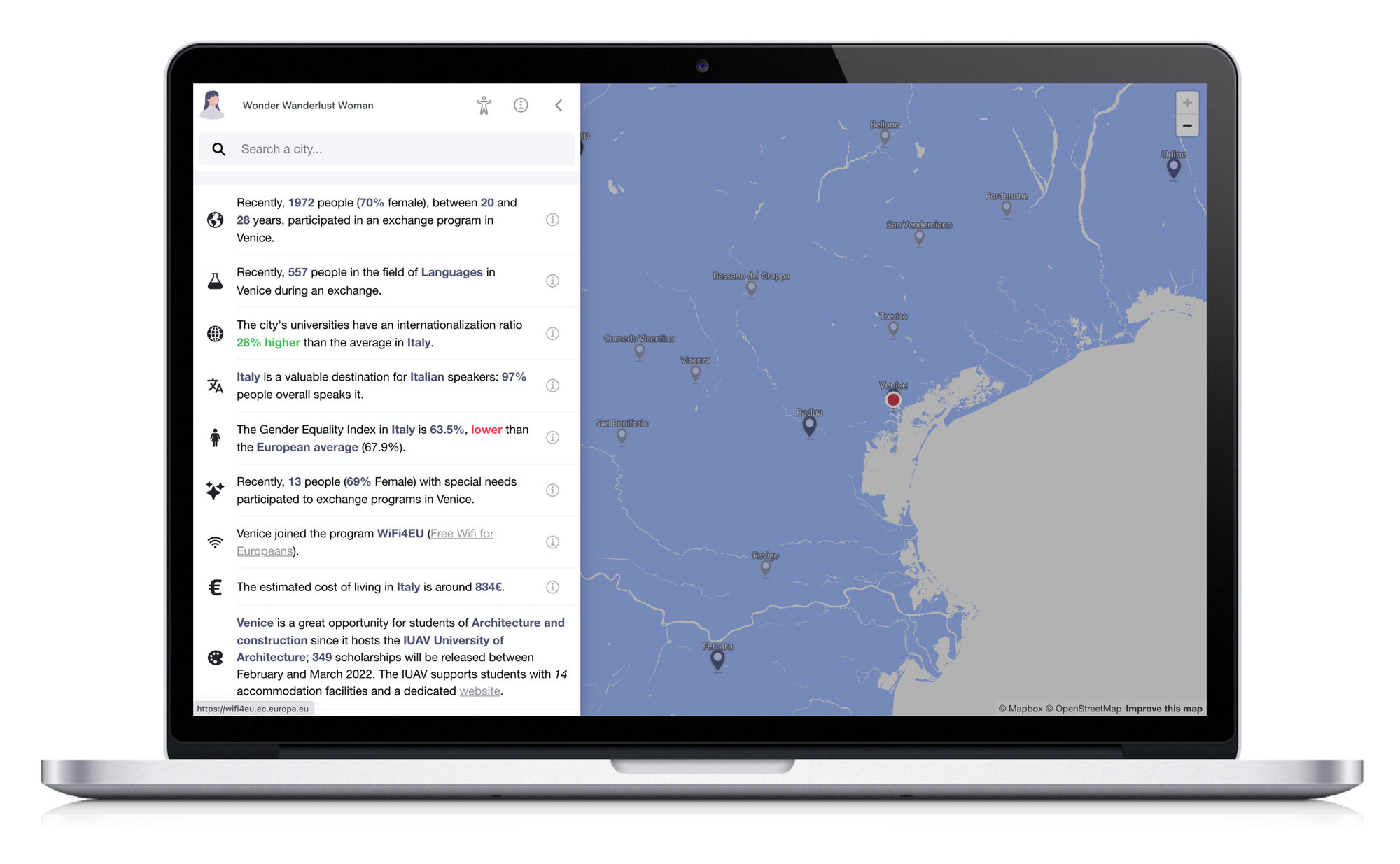 Inoltre, lo studio di un metodo di utilizzo inclusivo, permette l’uso della piattaforma a diverse utenti, che potranno trovare informazioni utili alle proprie necessità, come le città europee più accessibili.