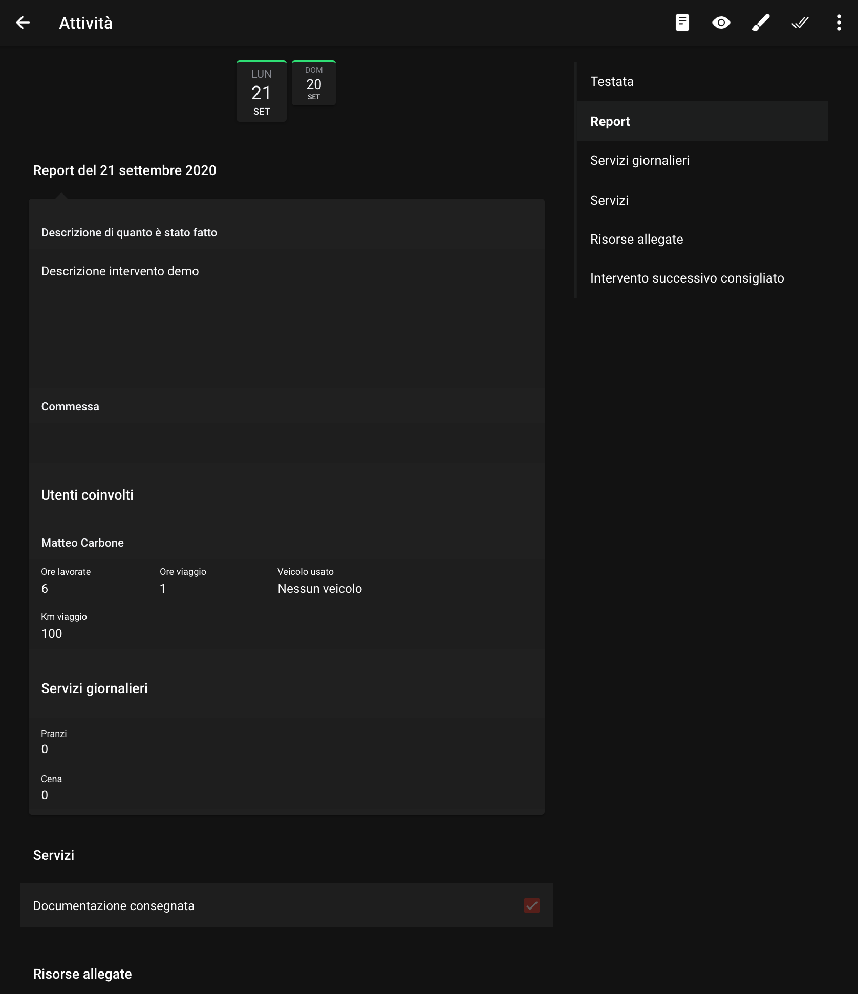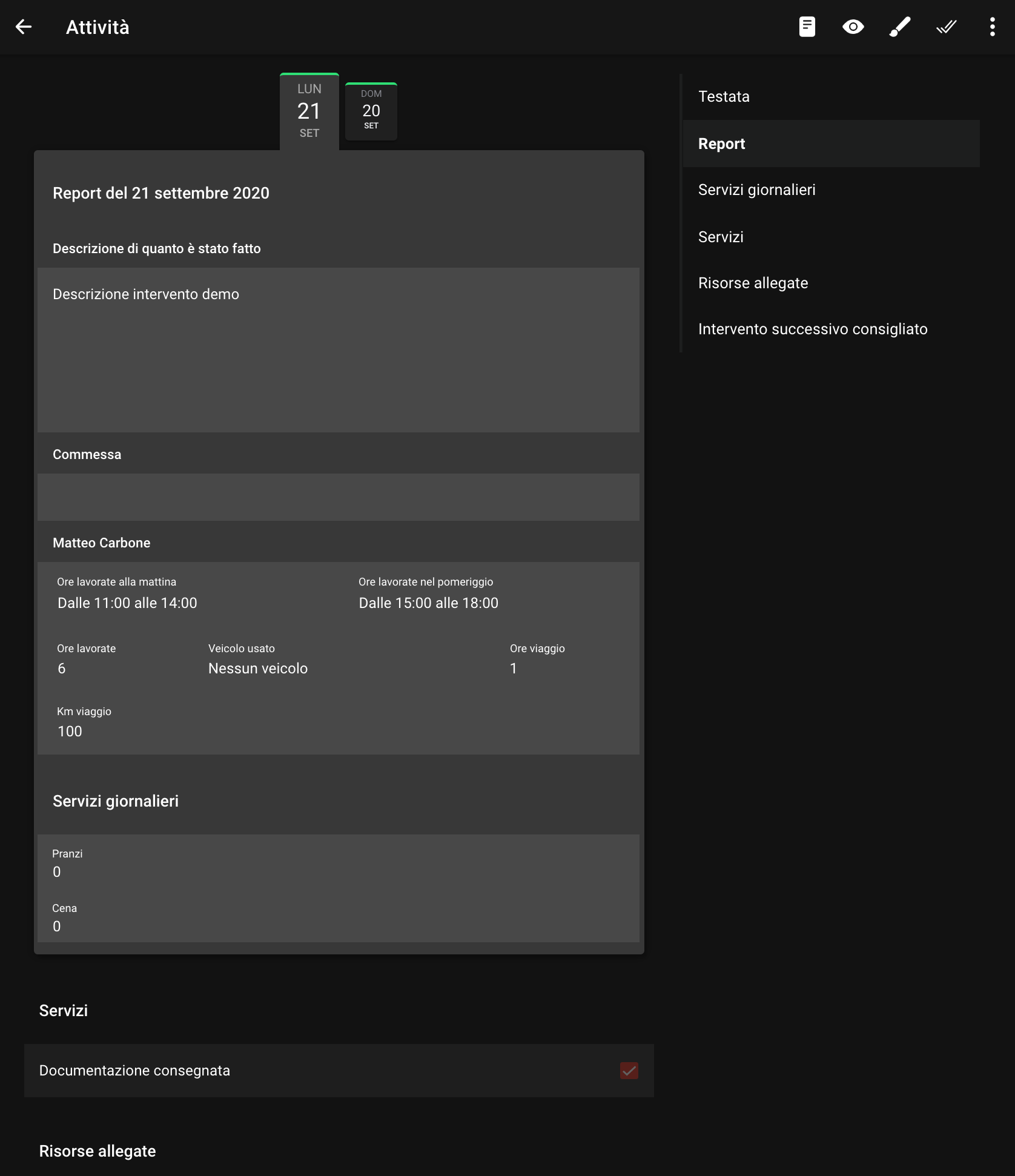 La stessa logica di feeback ci ha permesso di rafforzare una delle funzionalità recentemente introdotte: le attività multi-giornata. I nostri utenti hanno amato fin da subito la feature, ma trovavano a volte complicato distinguere i dati relativi a un particolare giorno del report. Guidati dai precisi suggerimenti, abbiamo ridisegnato il componente, che ora appare molto più chiaro ed efficace.