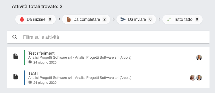 Le attività future sono mostrate in agenda: saprai sempre cosa è pianificato nel prossimo periodo. Quelle passate potrebbero invece essere un po' più complesse da monitorare, ed è purtroppo facile dimenticarsi di qualche step cruciale, mentre siamo presi dalla quotidianità. Avvantaggiati del nuovo widget nella pagina principale (e nell'archivio) e sarà semplice capire cosa occorre fare per portare a termine le attività inconcluse!