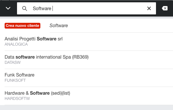 Abbiamo poi analizzato come gli utenti creano le proprie attività, e ci siamo resi conto che può essere utile, a volte, poter inserire nuove entità (come clienti, sedi e contatti) direttamente dalla pagina di creazione di un'attività. In questo modo, se devi lavorare per un cliente che ancora non è presente nella base dati, non devi necessariamente cambiare pagina, ma puoi completare l'operazione dalla stessa interfaccia, mantenendo il flusso rapido ed efficace.