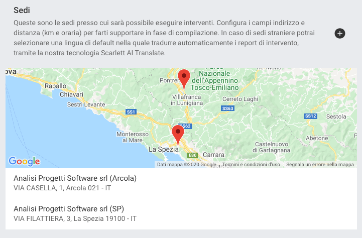 Un'altra casistica frequente, è quella di non sapere esattamente dove sono (geograficamente) i clienti e le loro sedi. Per darti un suggerimento visuale, abbiamo aggiunto dei widget per mostrarli su una mappa interattiva (powered by Google Maps).