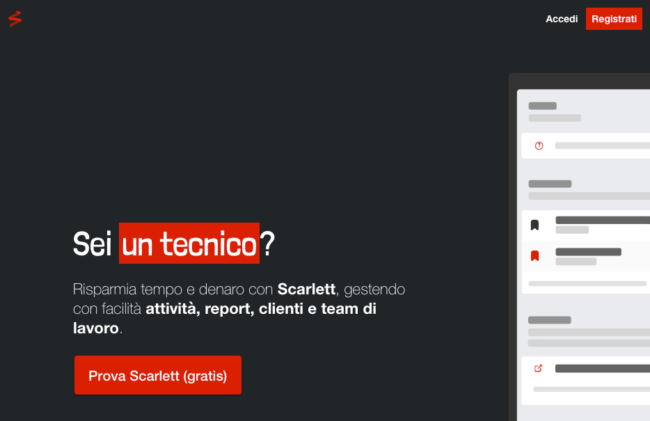 Dal momento che il pubblico di Scarlett sta crescendo sempre più, abbiamo anche ridisegnato la pagina introduttiva, che è ora bella come non mai! Esplorarla per scoprire come Scarlett può supportare il tuo business.
